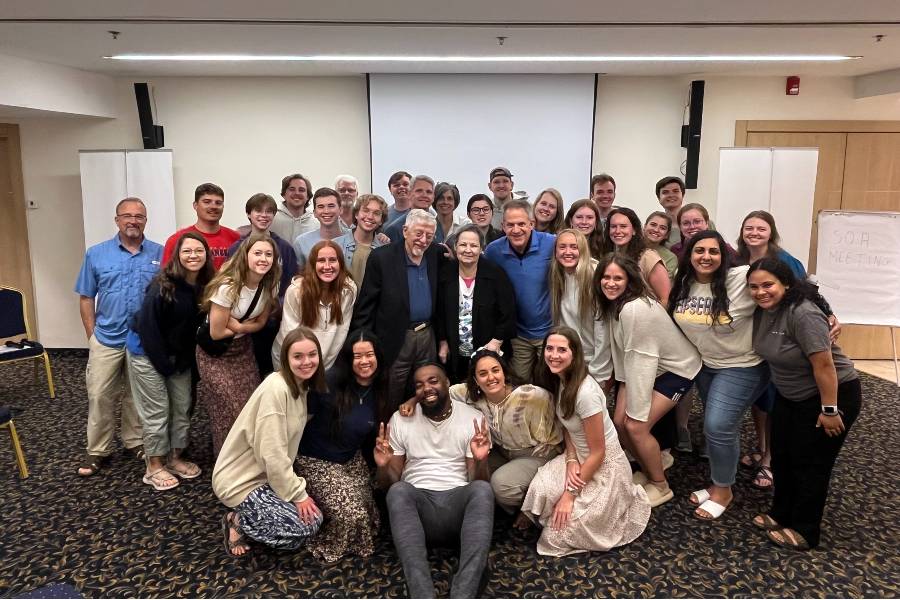 Students with Lipscomb alums Joseph and Marcia Shulam.