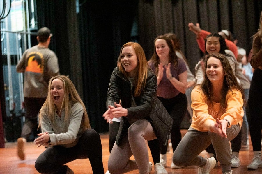 While January is made up mostly of planning and writing, February brings casting, as that is the month the social clubs accept new freshman members. The directors held auditions for some of the more complicated dances (like the couples dance with lots of flips and turns, according to Pearce) but, as is the tradition, accepted anyone and everyone who wanted to participate in the opener and closer.